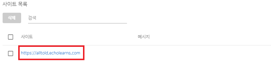 네이버에 site:alltold.echolearns.com를 검색하였고 검색이 되지 않아 네이버 서치어드바이저에서 "간단 체크"를 해보았습니다.